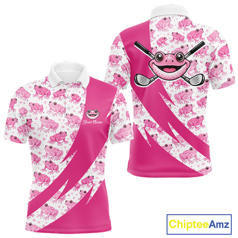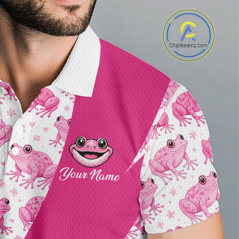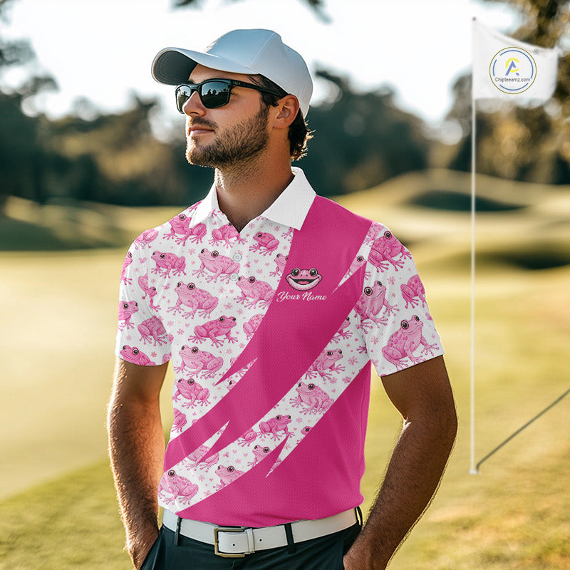 Funny Mens Golf Polo Shirts Custom Pink Frog Pattern Golf Attire For Men Personalized Golfer Gifts NHN0136