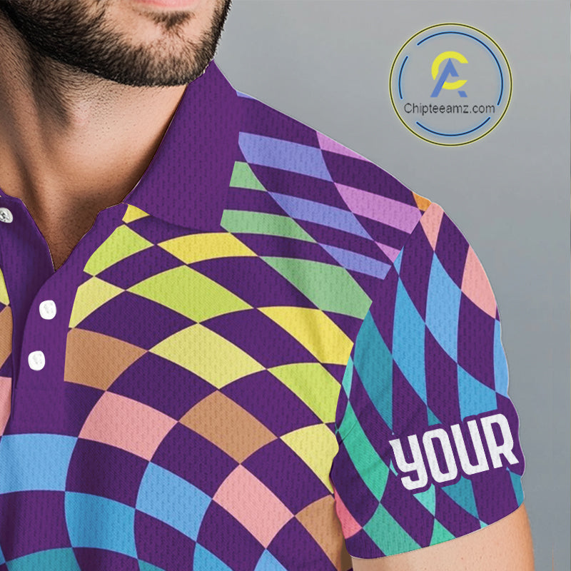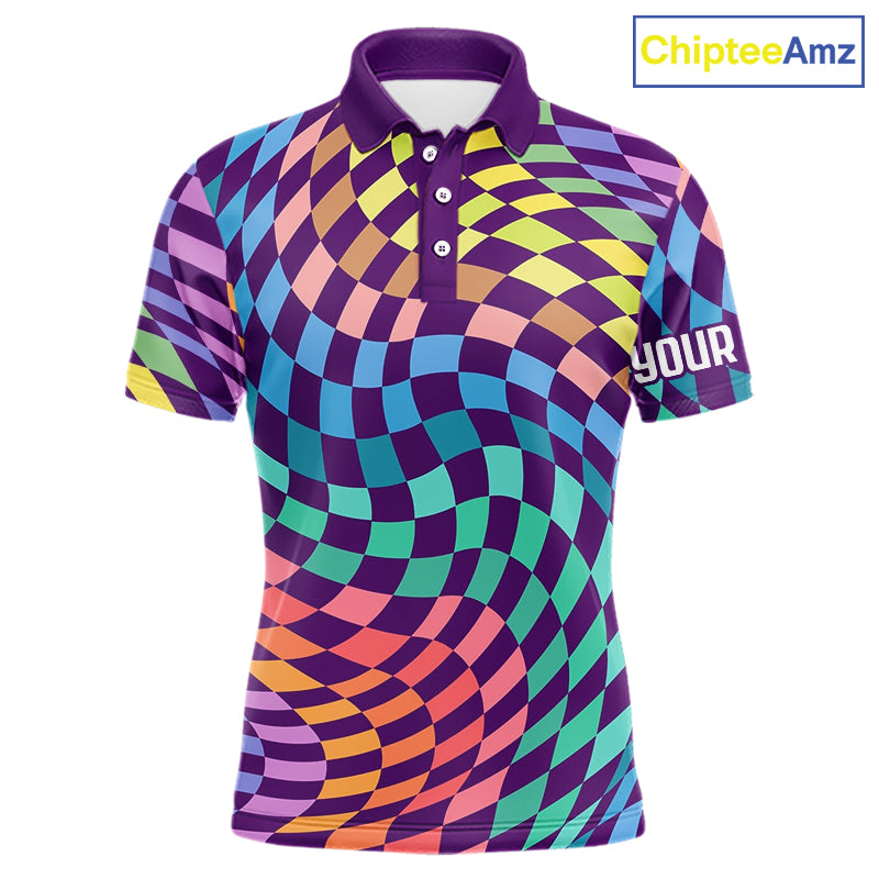 Mens Golf Polo Shirt Custom Checkerboard Argyle Pattern Golf Shirts For Men, Golf Gifts NHN0123