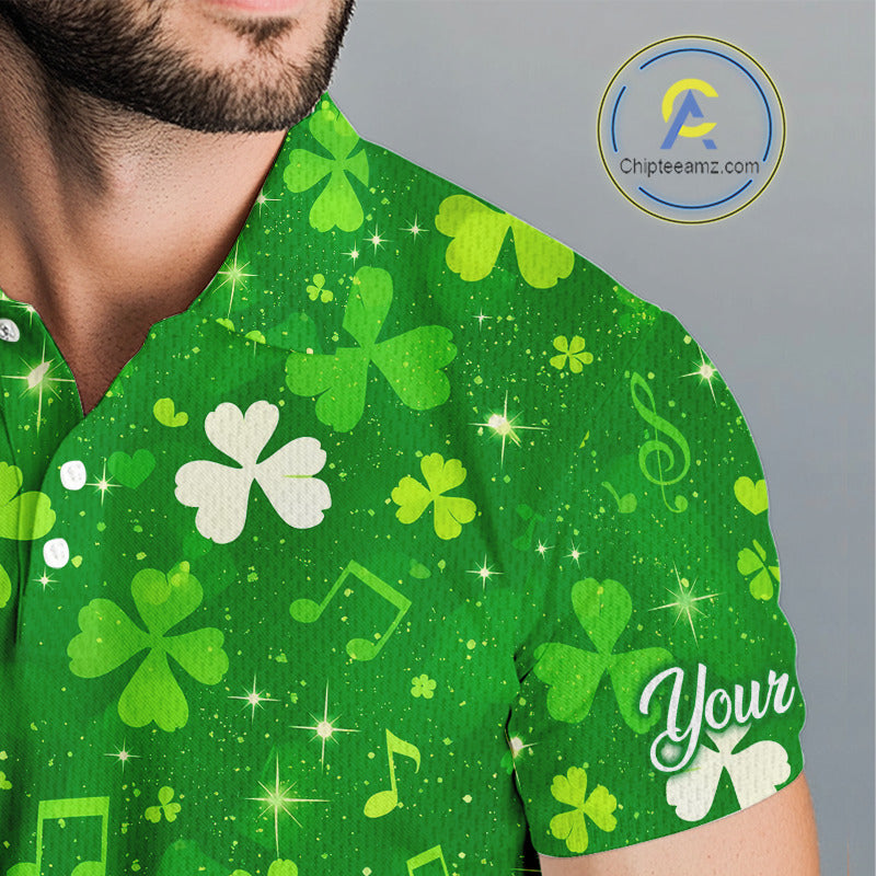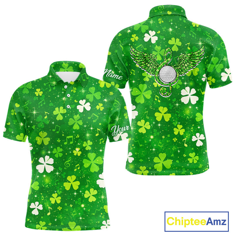 Mens Golf Polo Shirt Custom Green Music Angel Wing Golf Ball St Patricks Day Golf Shirts, Golf Gifts NHN0132