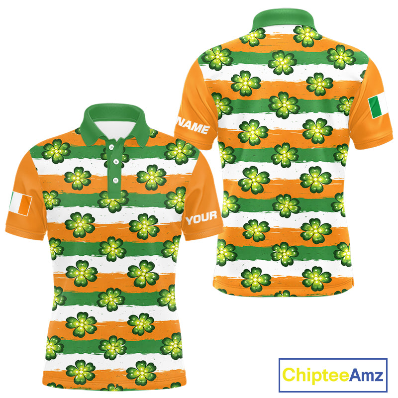 Mens Golf Polos Shirts Custom Green Clover St Patricks Day Pattern Ireland Flag Golf Shirt For Men NHN0138
