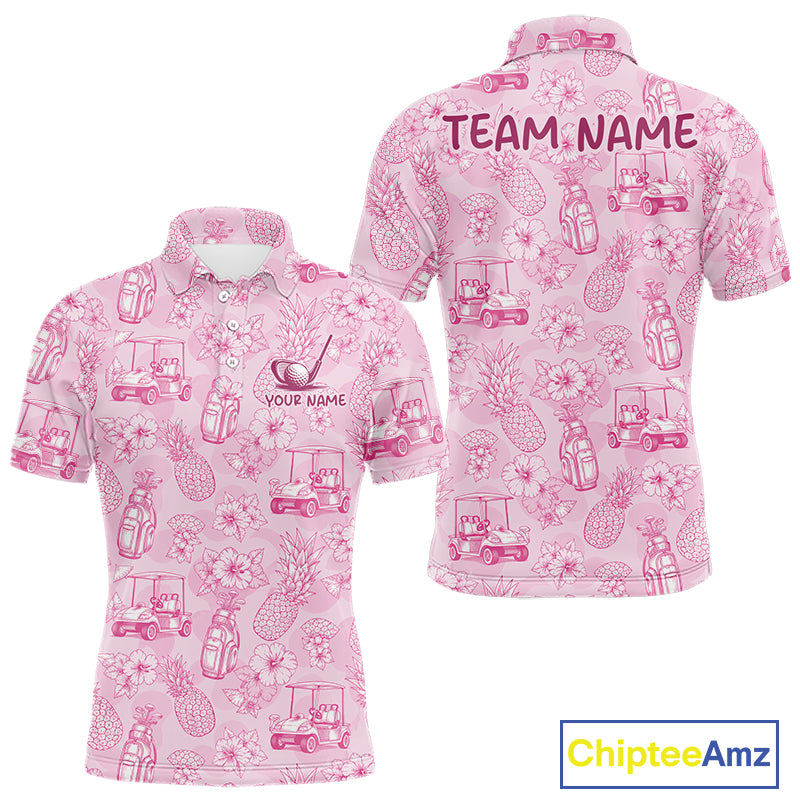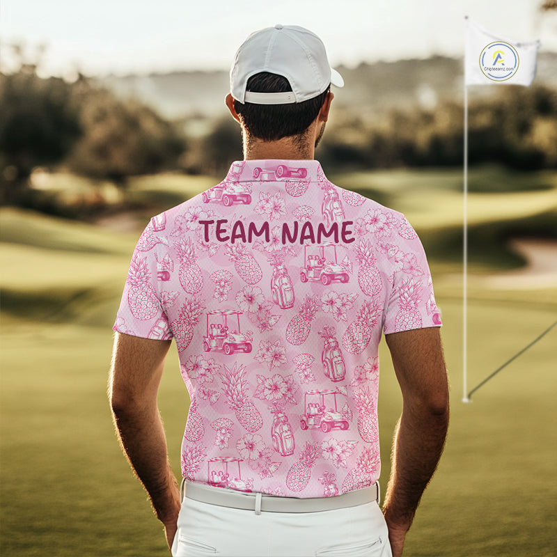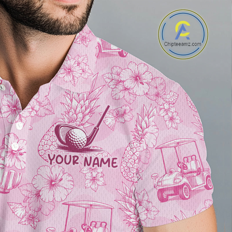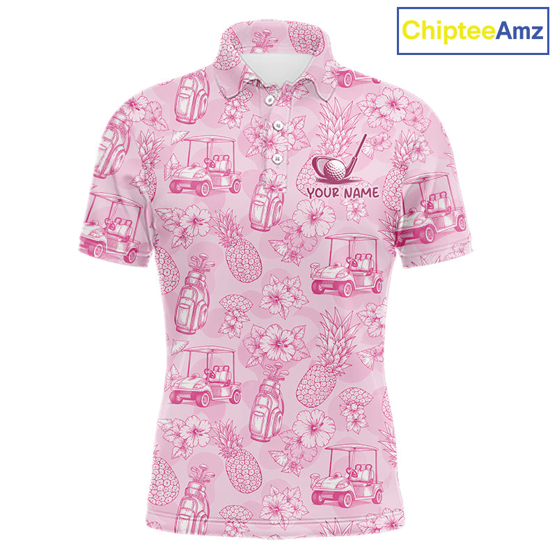 Funny Mens Golf Polo Shirt Pineapple Floral Golf Cart Pattern All Over Print Tropical Performance Top NHT842