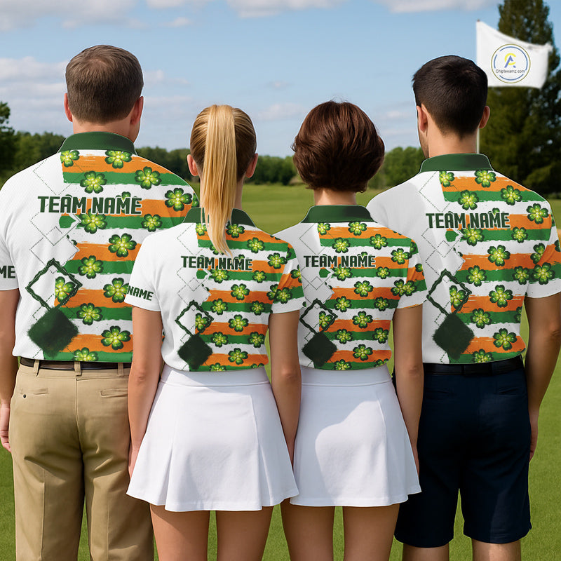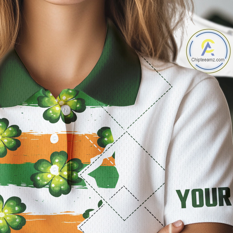 Womens Golf Polos Shirts Custom Green Clover St Patricks Day Pattern Ireland Flag Golf Top Shirt NHN0139