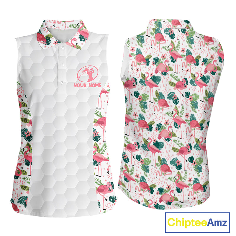 Womens Sleeveless Golf Polo Shirt Floral Flamingo Pattern Tropical Leaves Custom Team Golf Polo NHN0021