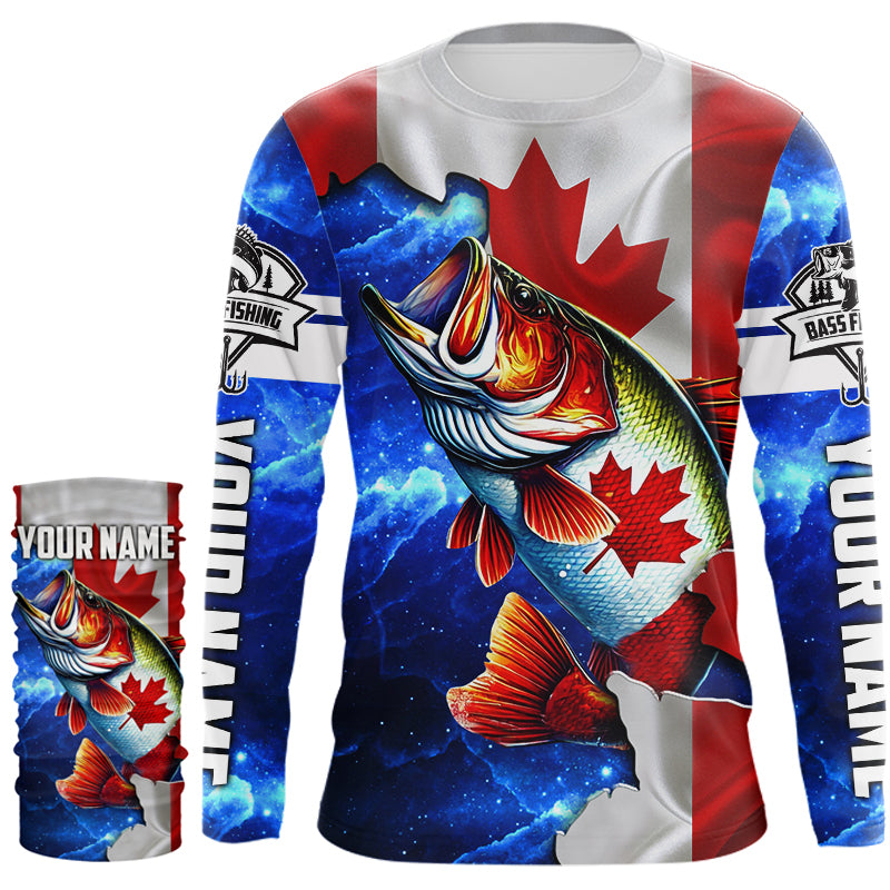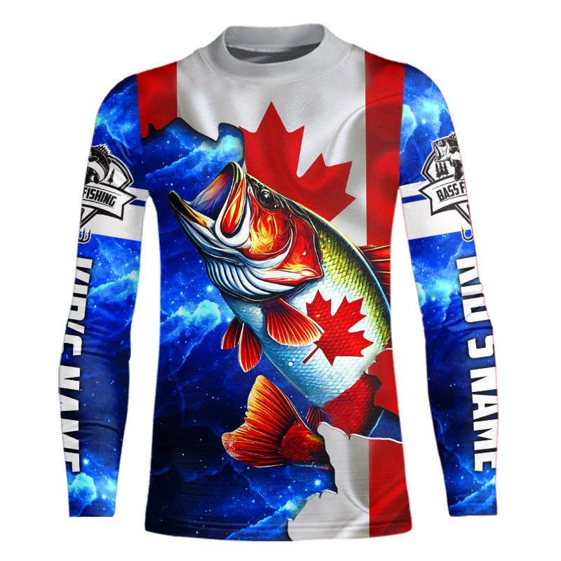 Bass Fishing Canadian Flag patriotic UV protection Custom name long sleeves shirt NQS9309