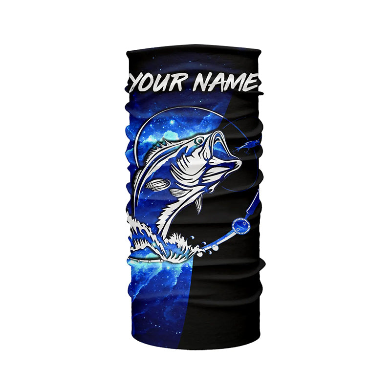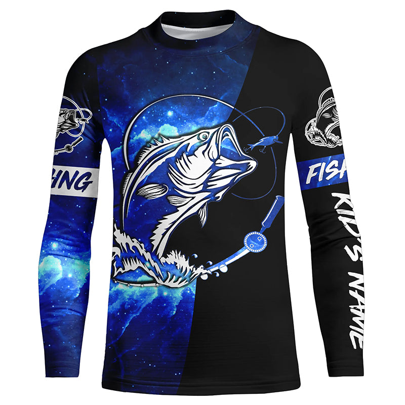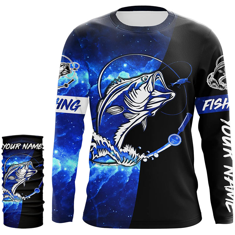 Bass Fishing tattoo blue galaxy black Custom name performance UV protection long sleeve fishing shirts NQS5293