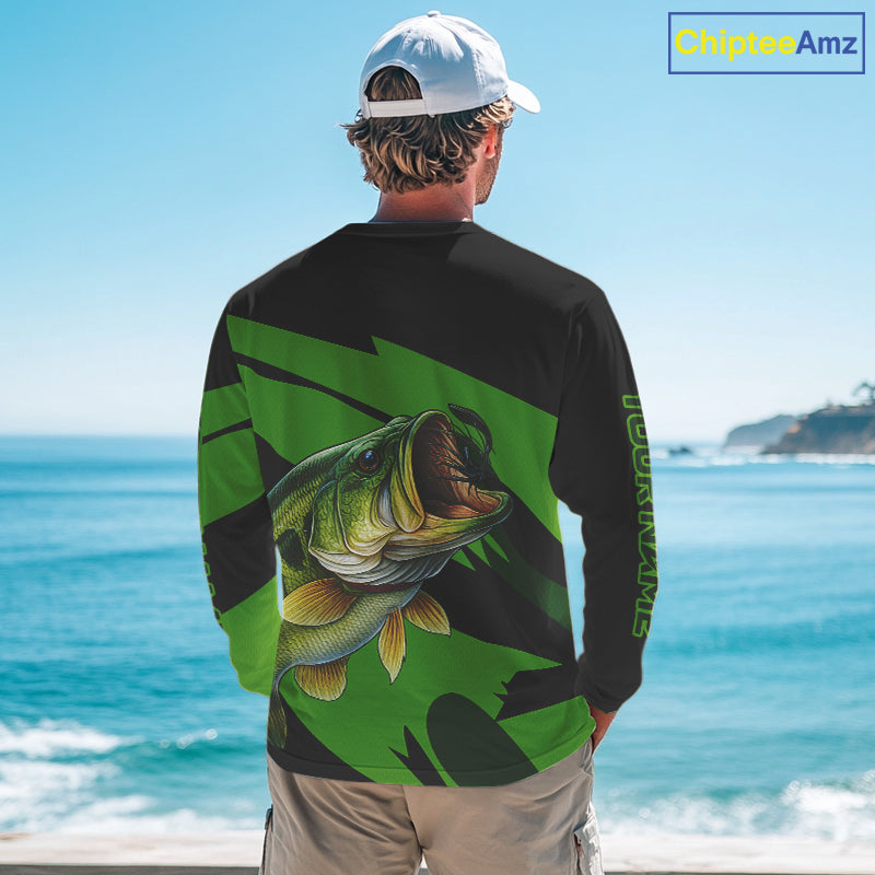 Black and Green Largemouth Bass fishing UV Protection shirts custom name Bass fishing jerseys NQS10394