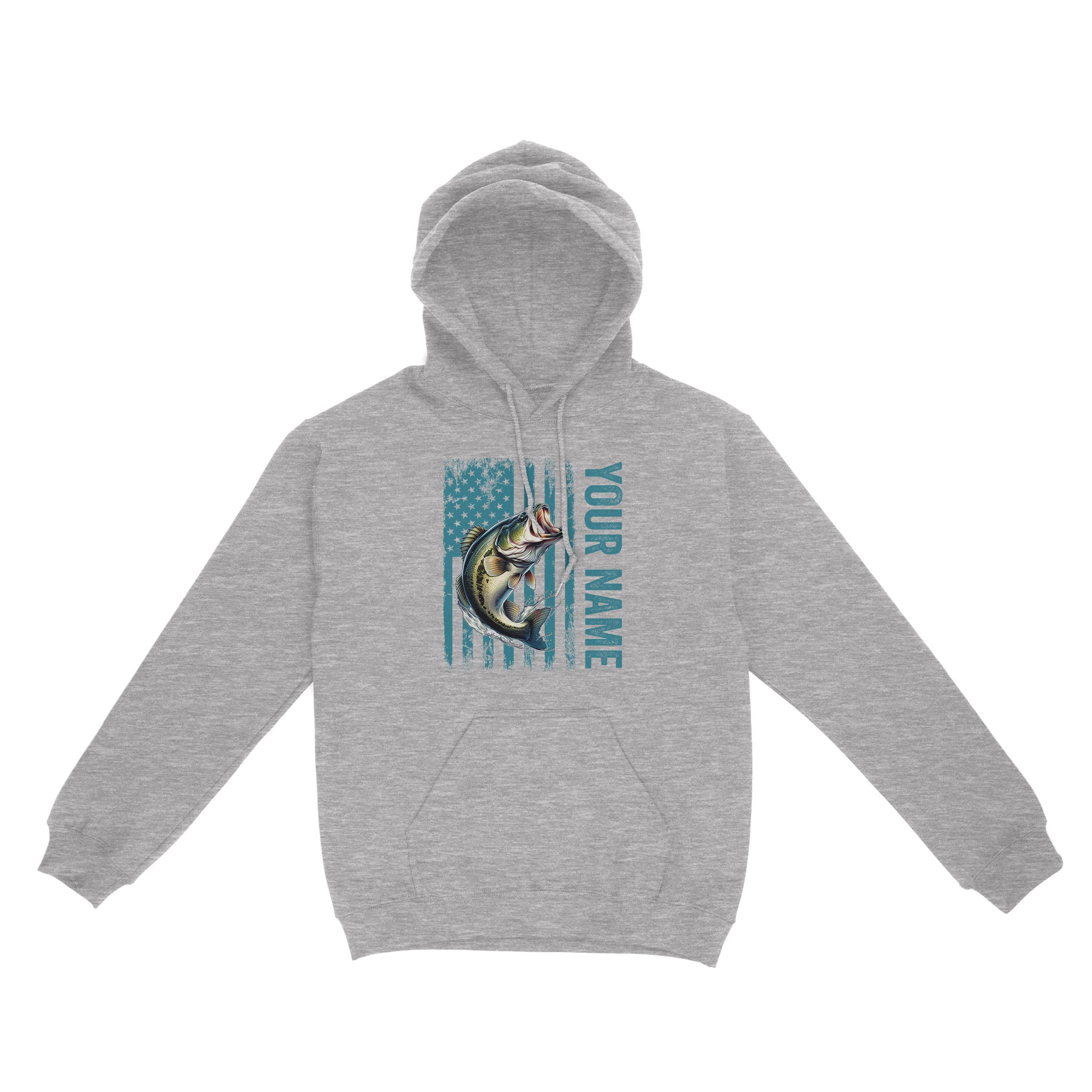 Blue American Flag Largemouth Bass Fishing Custom Name Bass Fishing Hoodie, Gift for Fisherman D03 NQS9908