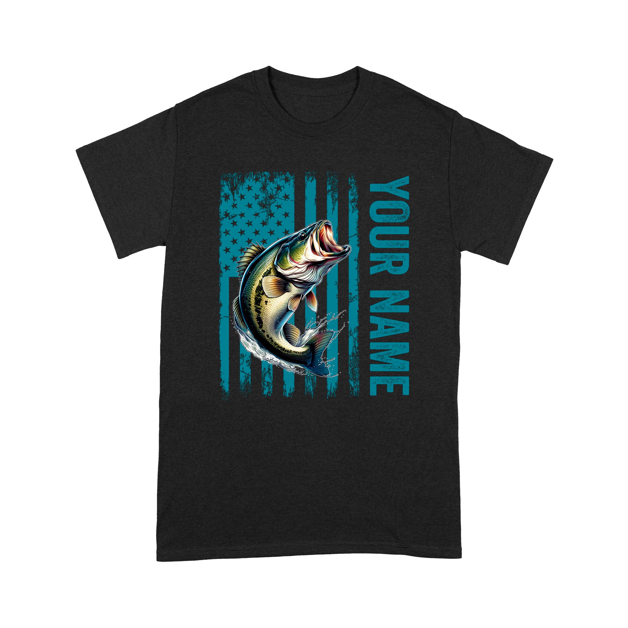 Blue American Flag Largemouth Bass Fishing Custom Name Bass Fishing T-Shirt, Gift for Fisherman D03 NQS9908