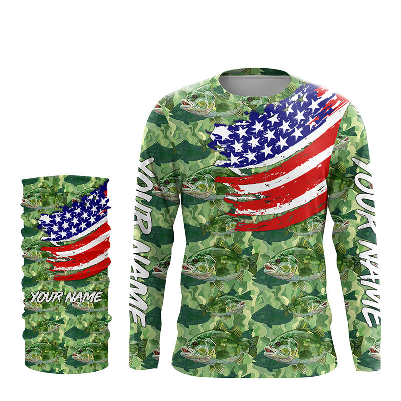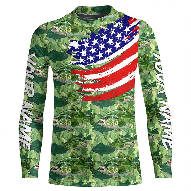 Green Largemouth Bass camo fishing American flag Custom performance long sleeve Bass fishing shirts NQS7387