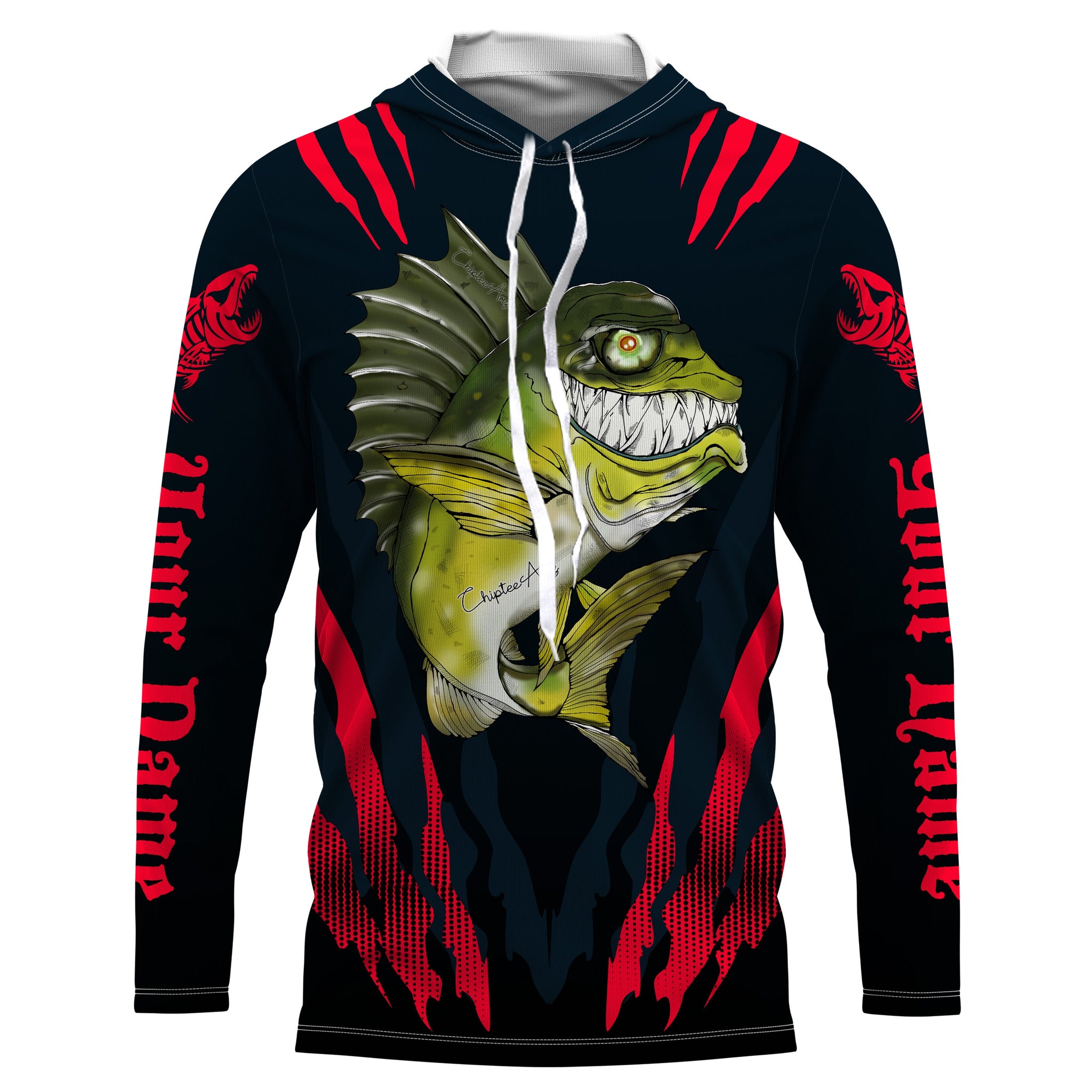 Angry Bass Fishing Custom Long sleeve Fishing Shirts, Bass fish reaper fishing jerseys | red IPHW3376