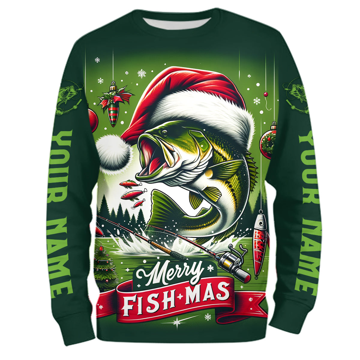 Merry Fishmas Largemouth Bass Custom Christmas Fishing Shirts, Personalized Xmas Fishing Gifts IPHW5550