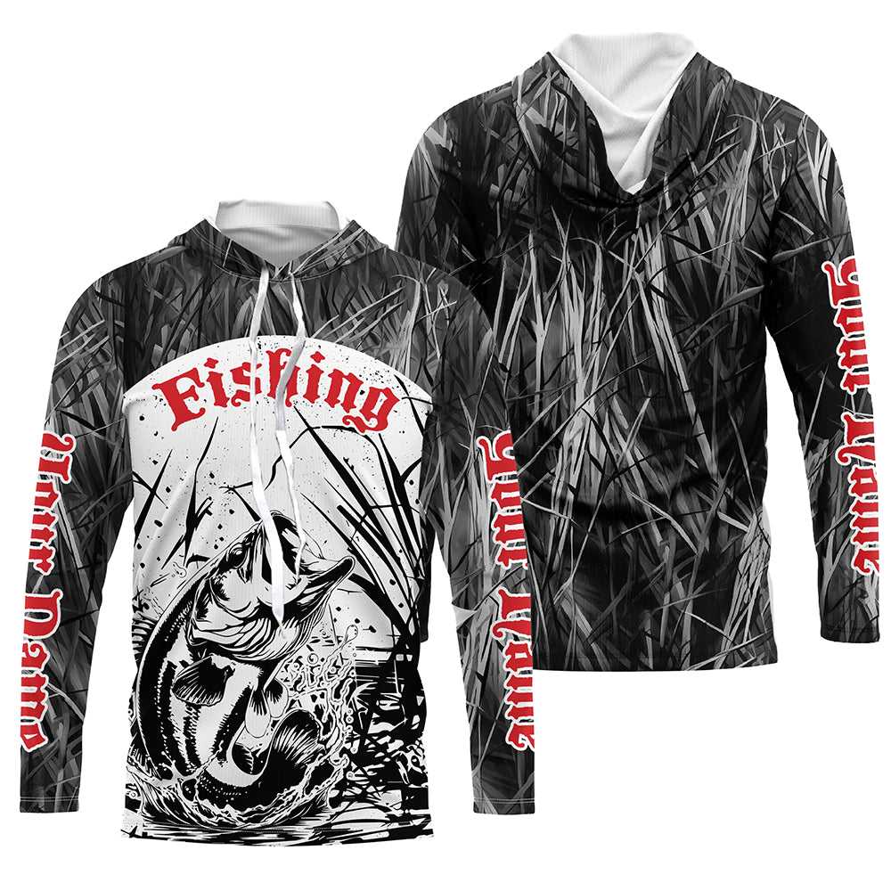 Largemouth Bass Fishing Gray Camo Custom 3D Full Printing Shirts, Bass Long Sleeve Fishing Shirts IPHW6643
