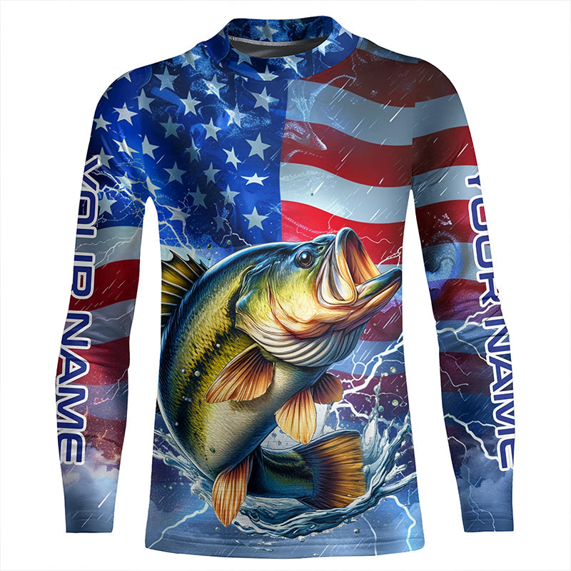 Largemouth Bass fishing American flag Long Sleeve Fishing Shirt custom Lightning Bass fishing jersey NQS7702