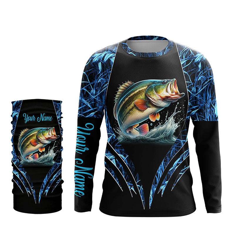 Largemouth bass fishing blue camo custom 3D All Over Printed Fishing Shirts, Bass fishing apparel NQS7898