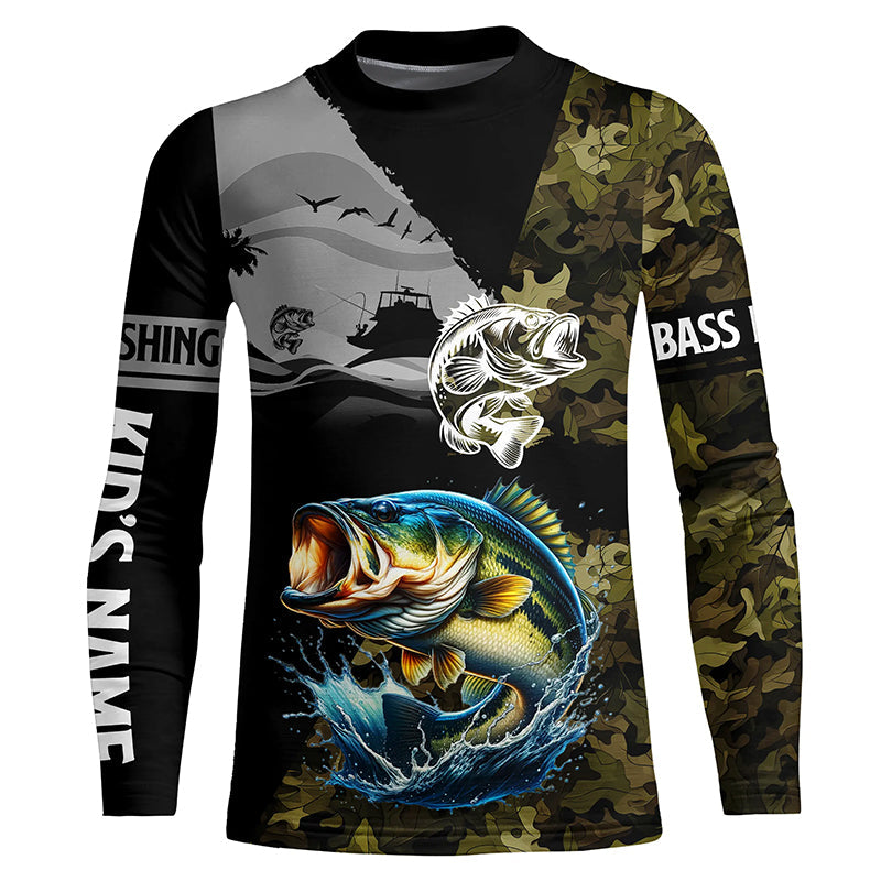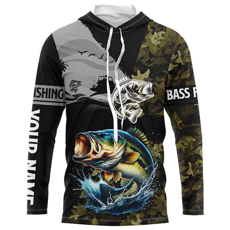 Largemouth Bass Fishing Camo UV protection custom long sleeve fishing apparel, Bass fishing jerseys NQS8198