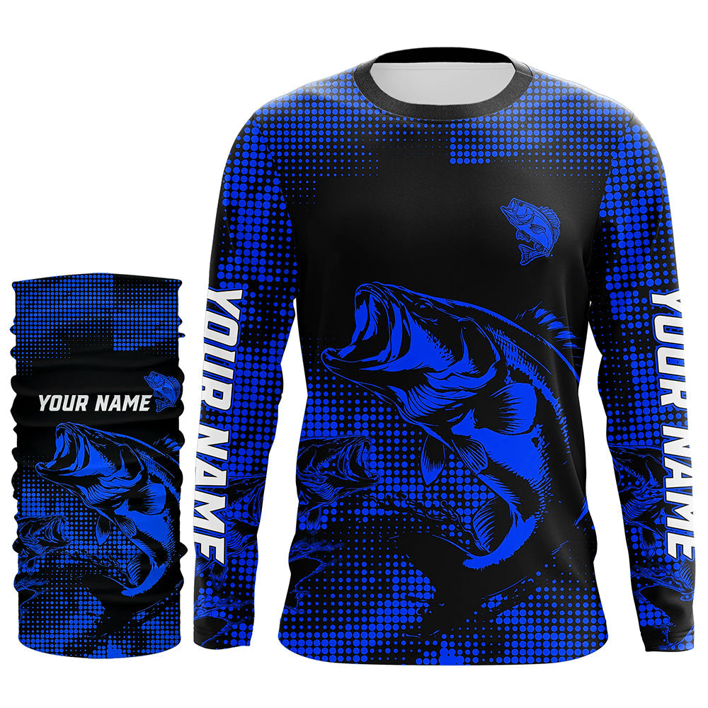 Largemouth Bass fishing jersey Custom UV protection performance bass fishing tournament shirts | Blue NQS9395