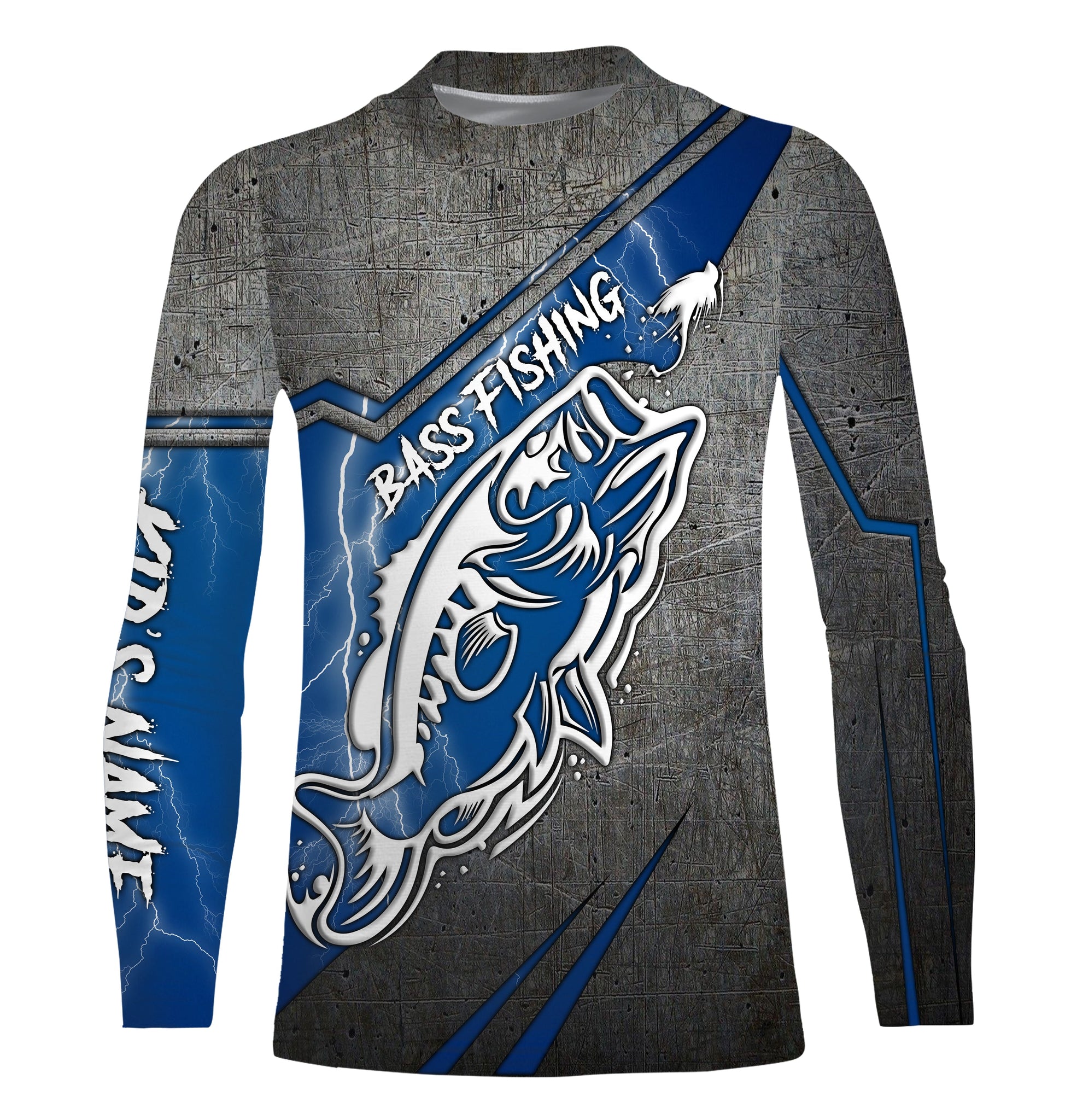 Largemouth bass fishing tattoo Custom Name 3D All over printed Fishing Shirts UV protection UPF 30+, blue lightning fishing jerseys NQS2816