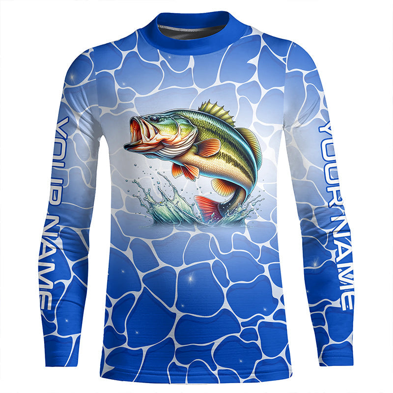 Personalized blue water camo Largemouth bass Long Sleeve Fishing Shirts, Tournament Fishing Jerseys NQS7440
