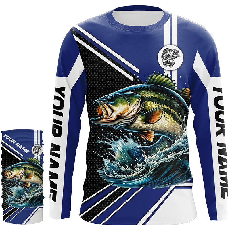 Personalized Largemouth Bass fishing Long Sleeve Performance Fishing Shirt, Bass fishing jersey | Blue NQS7598