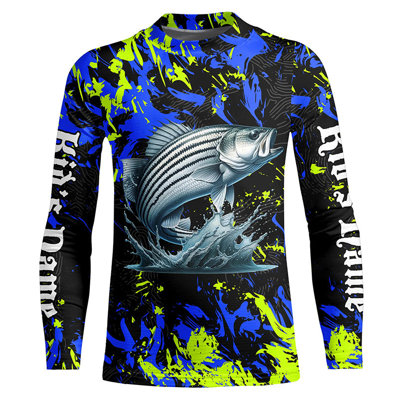 Striped bass fishing green blue camo Custom UV protection performance long sleeve fishing jerseys NQS7241