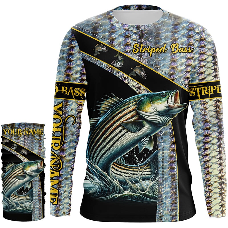 Striped Bass fishing scales UV protection Custom long sleeve fishing shirts, Striper fishing jerseys NQS4891