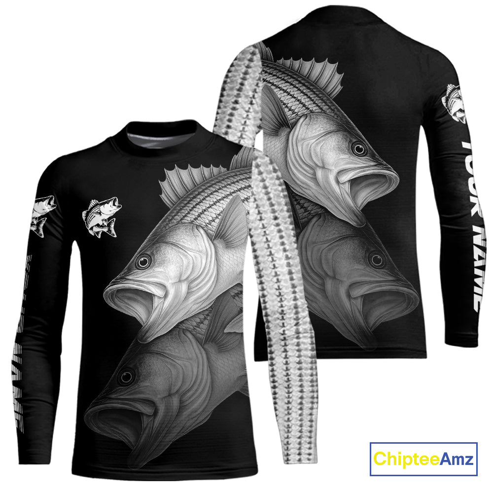 Striped Bass performance Fishing Shirts Custom Striper Fishing Long Sleeve Tournament Fishing Shirts NQS10113