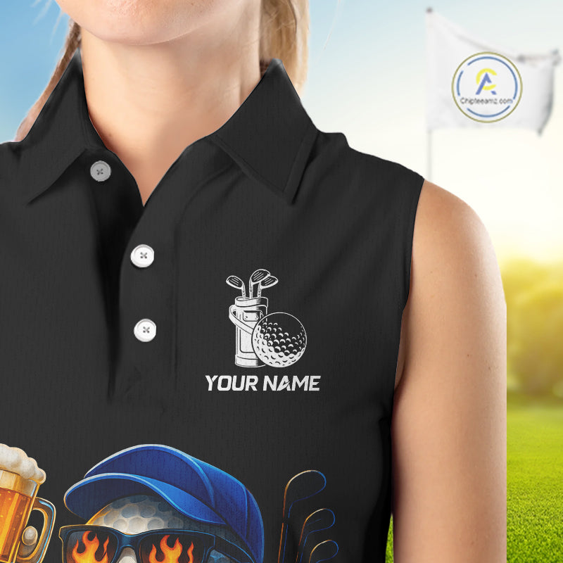 Funny American Flag Golf ball Women sleeveless polo shirts custom golf and beer ladies golf apparel NQS10009
