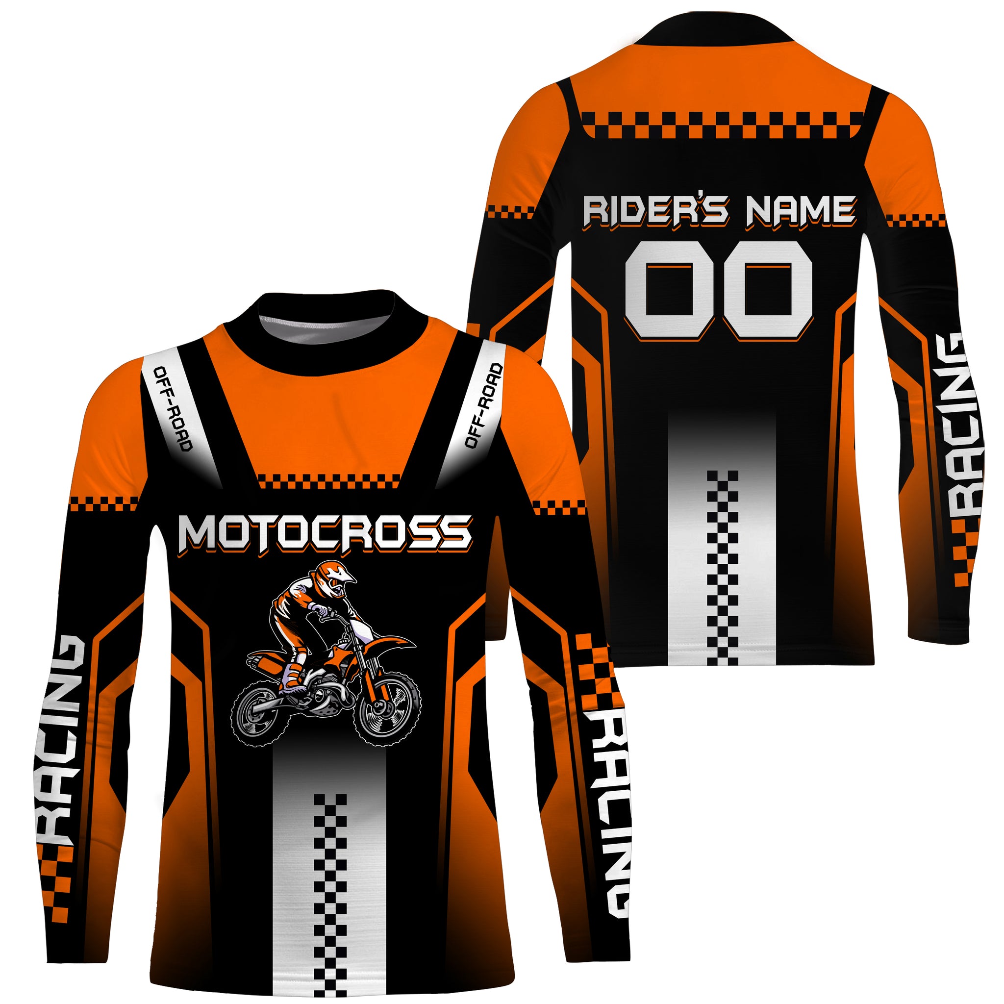 Personalized Motocross Jersey Kid Men UPF30+ Orange Dirt Bike Shirt Off-Road MX Motorcycle Jersey PDT576