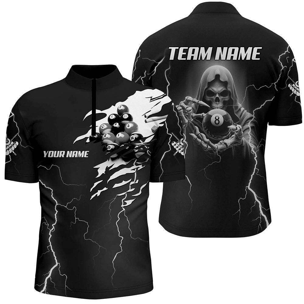 Black Skeleton Lightning Thunder Custom Men Billiard Shirts, Billiard Pool Team Jerseys Uniform TDM2921