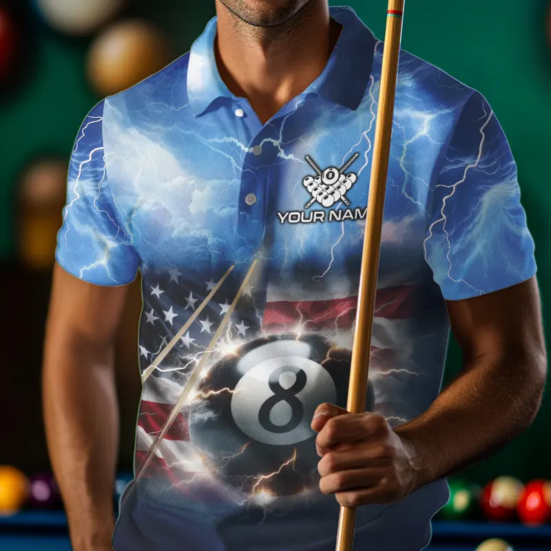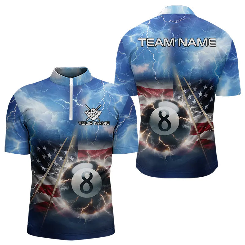 American Flag Thunder Lightning 8 Ball Pool Billiard Shirts For Men Customized Billiard Team Jersey TDM3756
