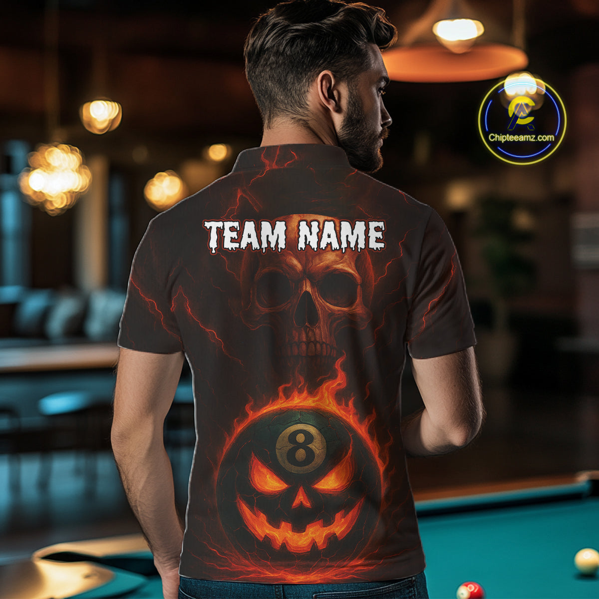 Funny Pumpkin 8 Ball Pool Billiard Shirt For Men Custom Halloween Billiard Team Shirt Outfit TDM4889