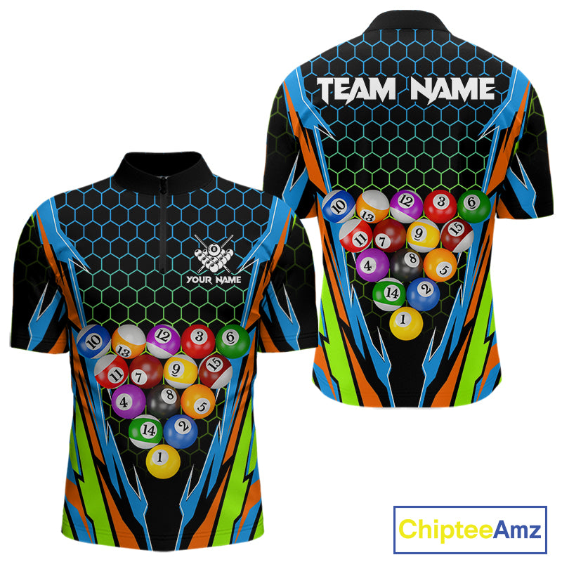 Colorful 3D Billiard Jersey For Men Custom Funny Pool Balls Billiard Team Shirt Polo & 1/4 Zip TDM4933