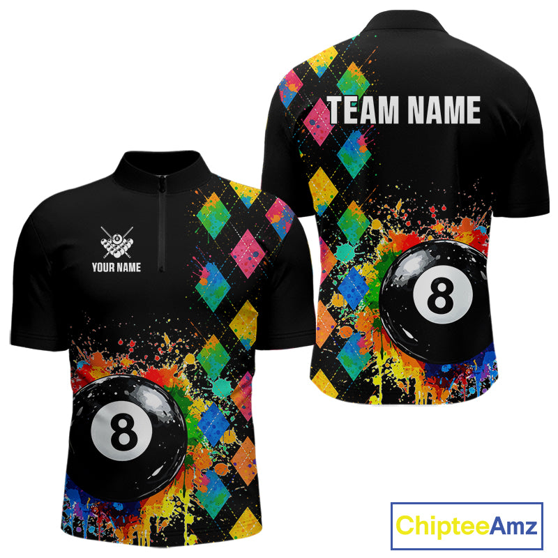 Funny 8 Ball Pool Paint Colorful Argyle Custom Billiard Shirt For Men, Best Pool Team Jersey TDM4961