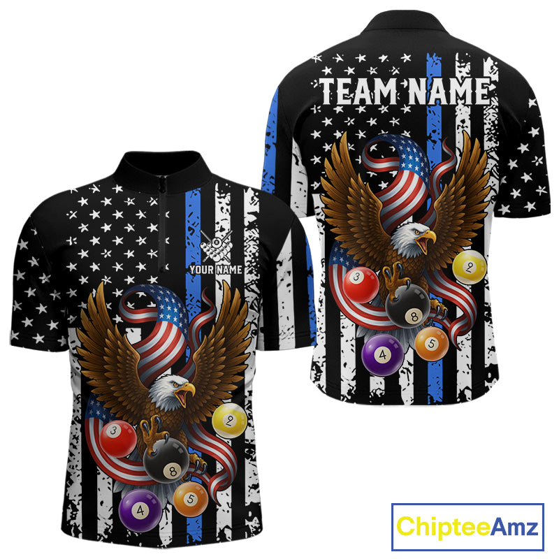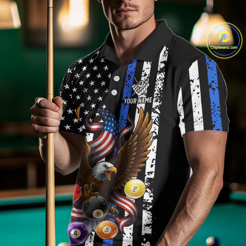 Billiard Eagle American Flag Stripes Pool Jersey For Men Custom Patriotic Billiard Team Shirt|Blue TDM4982