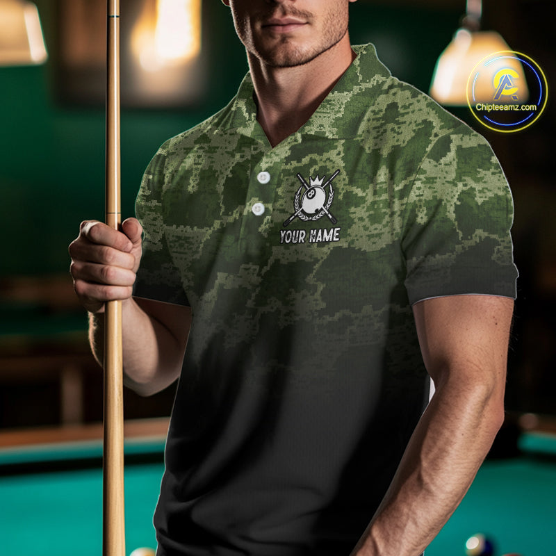 Black And Green Camo American Flag 8 Ball Billiard Shirt For Men Custom Patriotic Pool Team Jersey TDM5036