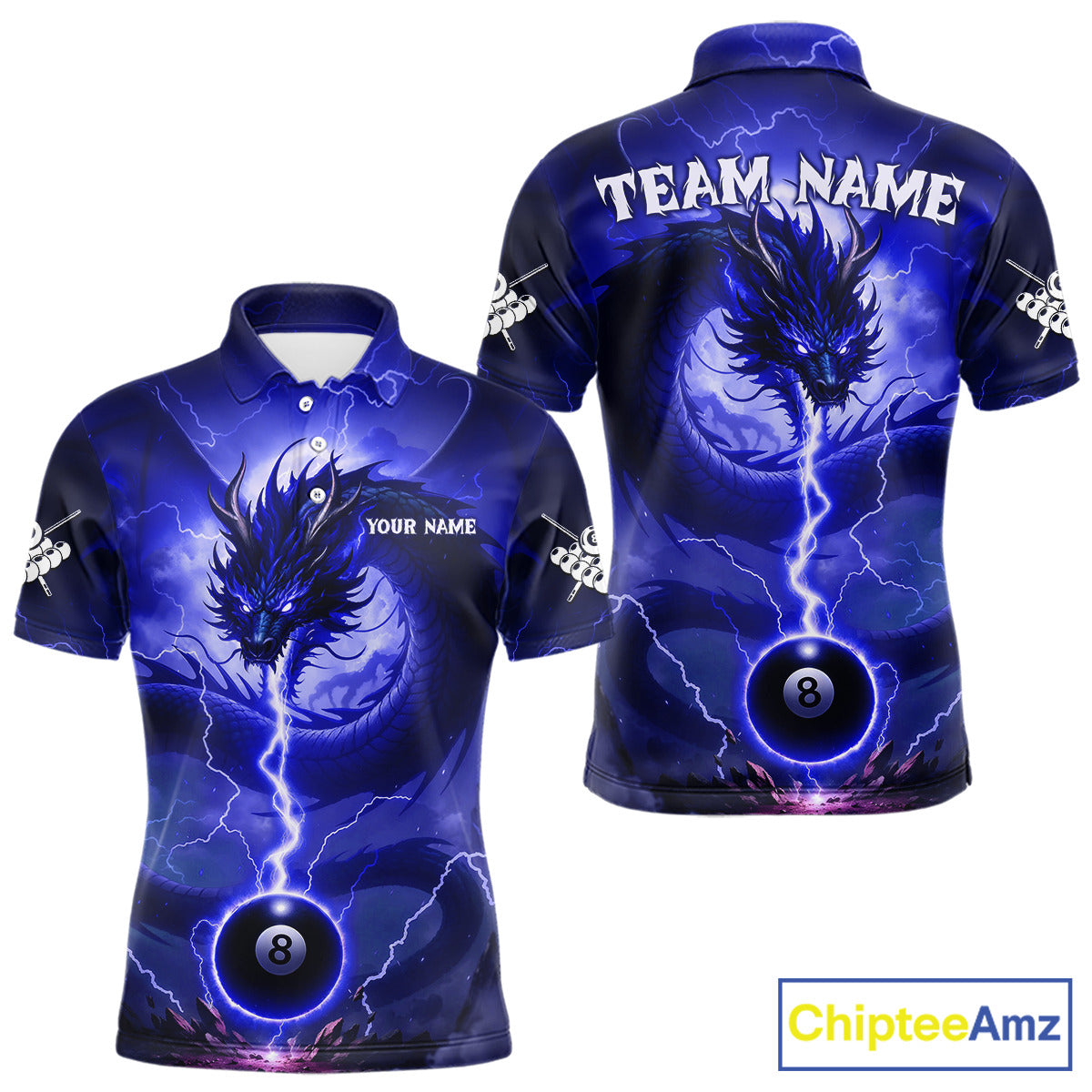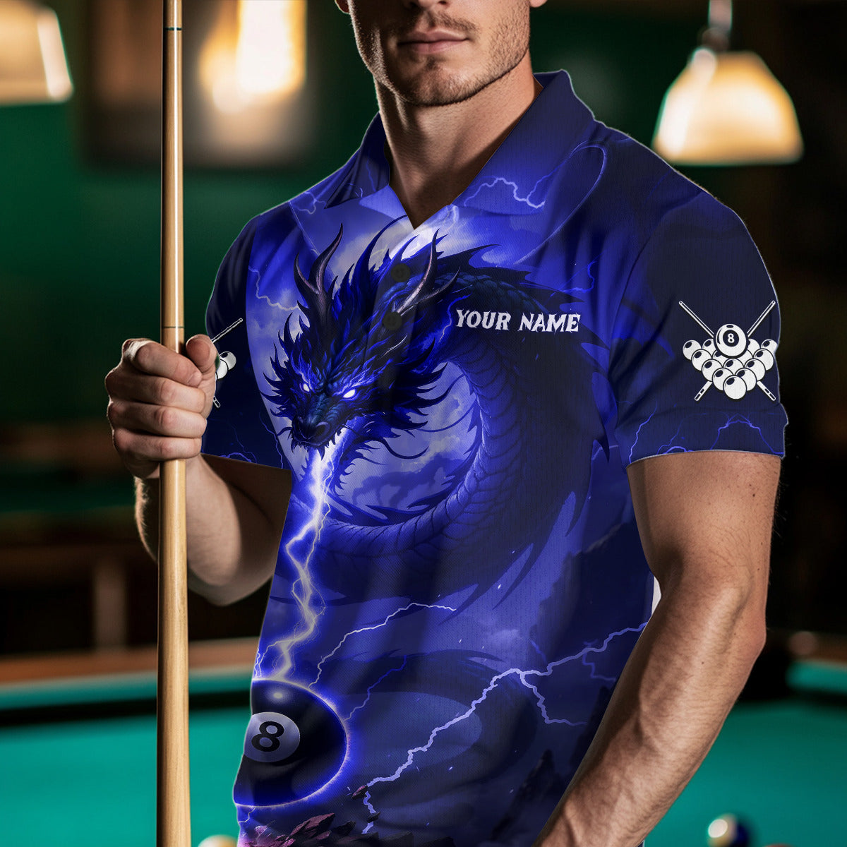 Blue 8 Ball Lightning Dragon Billiard Jersey For Men Custom Pool Team Shirt Polo & 1/4 Zip TDM5115