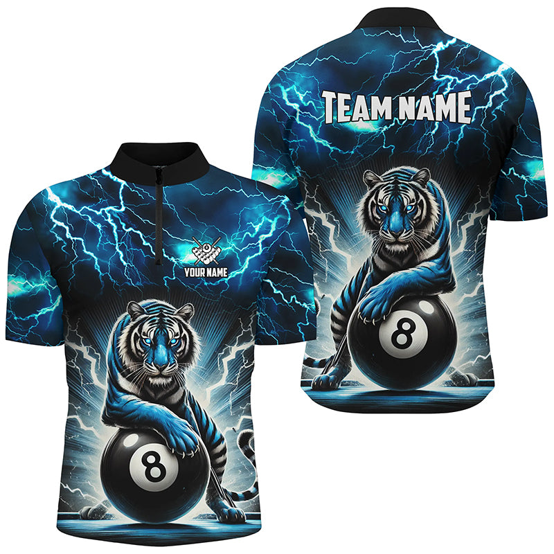 Lightning Thunder Tiger Custom Blue 8 Ball Pool Shirts For Men, Billiard Team League Jerseys TDM2419