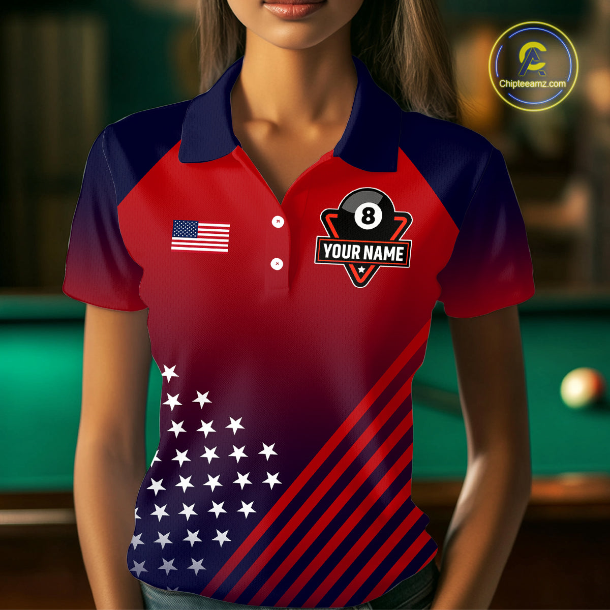 US Flag Billiard Jersey For Women Custom 8 Ball Polo & Quarter Zip Billiard Shirts Pool Team Jersey TDM3801