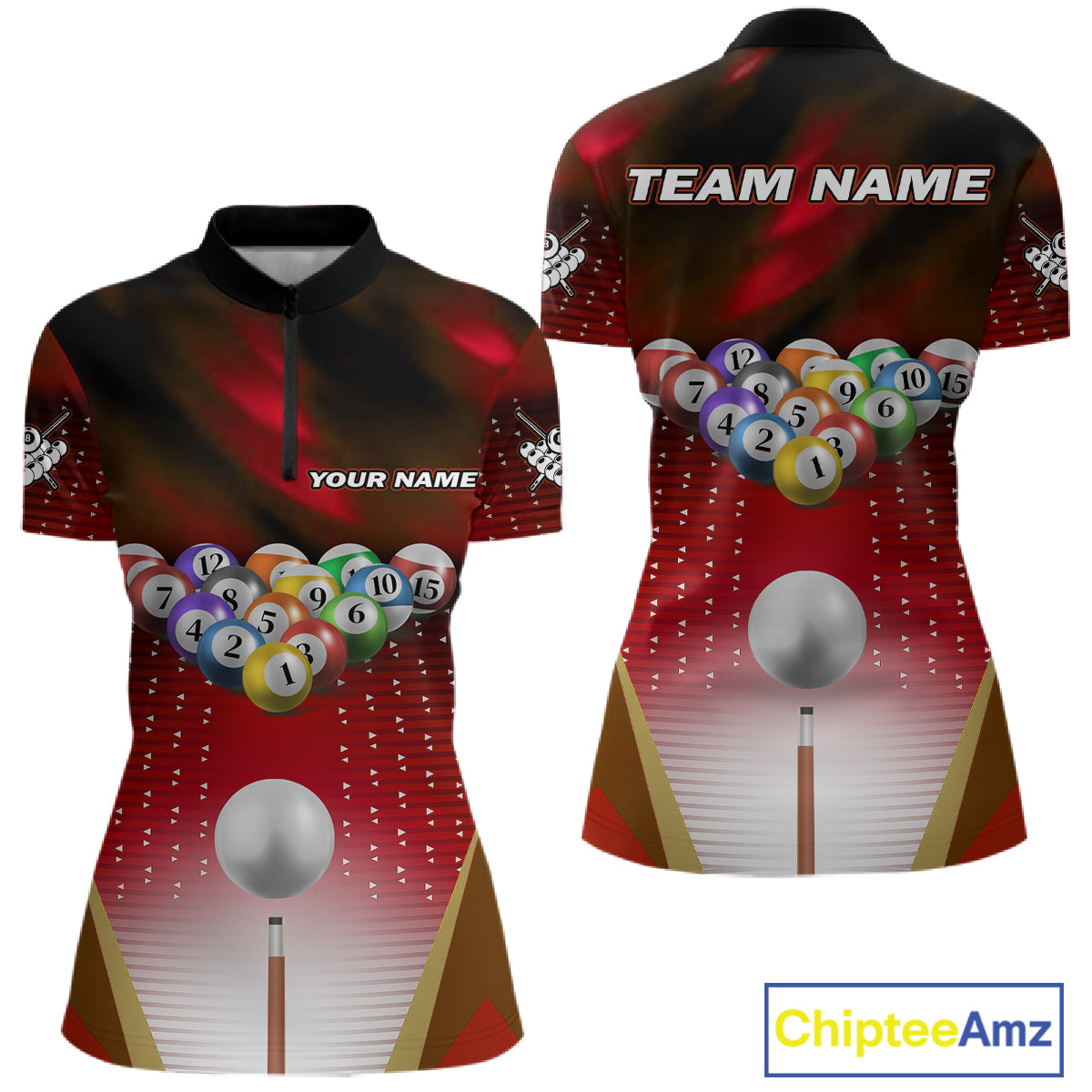 Red Billiard Jersey For Women Custom 3D Billiard Tournament Shirt, Pool Team Jersey Polo & 1/4 Zip TDM4931