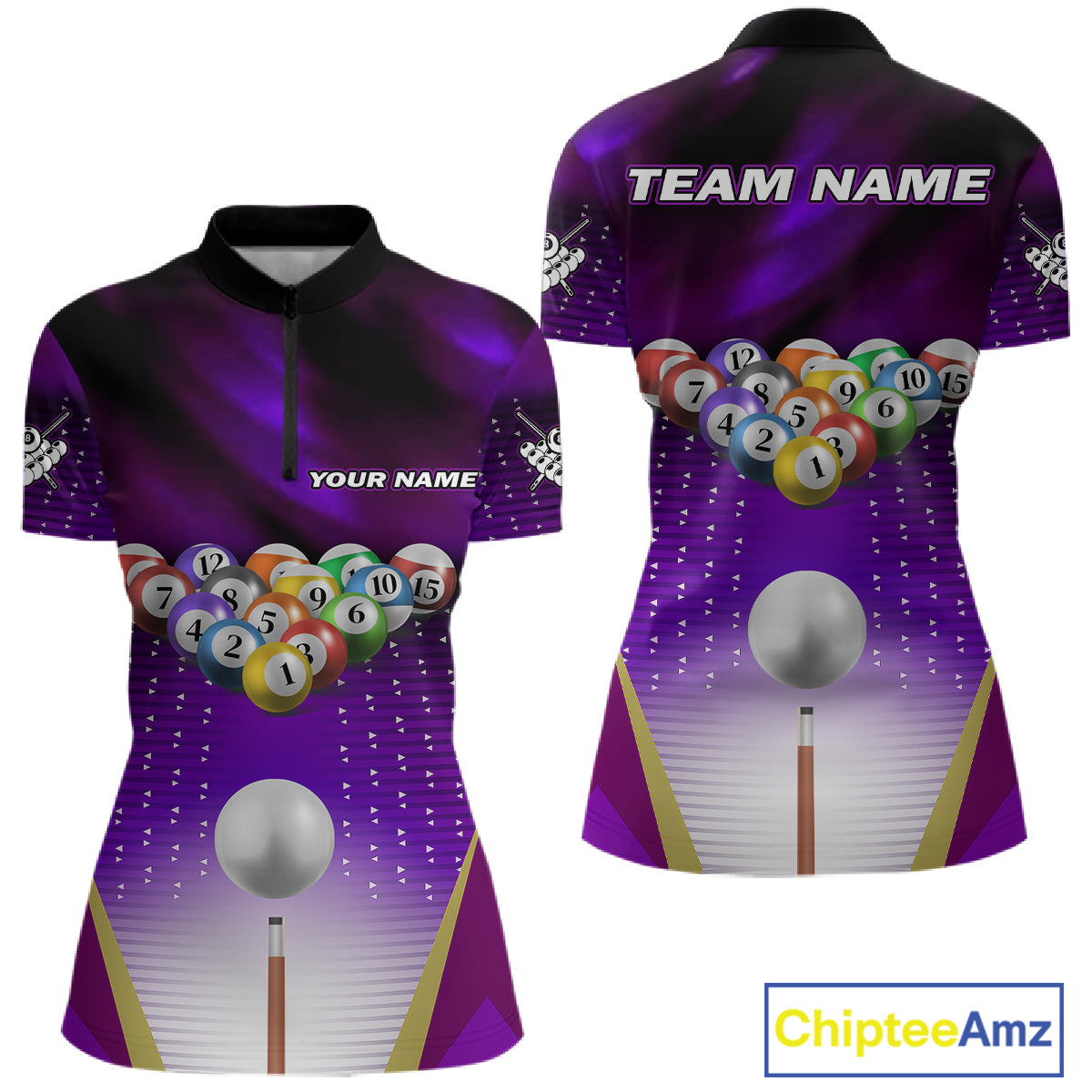 Purple Billiard Jersey For Women Custom Billiard Tournament Shirt, Pool Team Jersey Polo & 1/4 Zip TDM4932