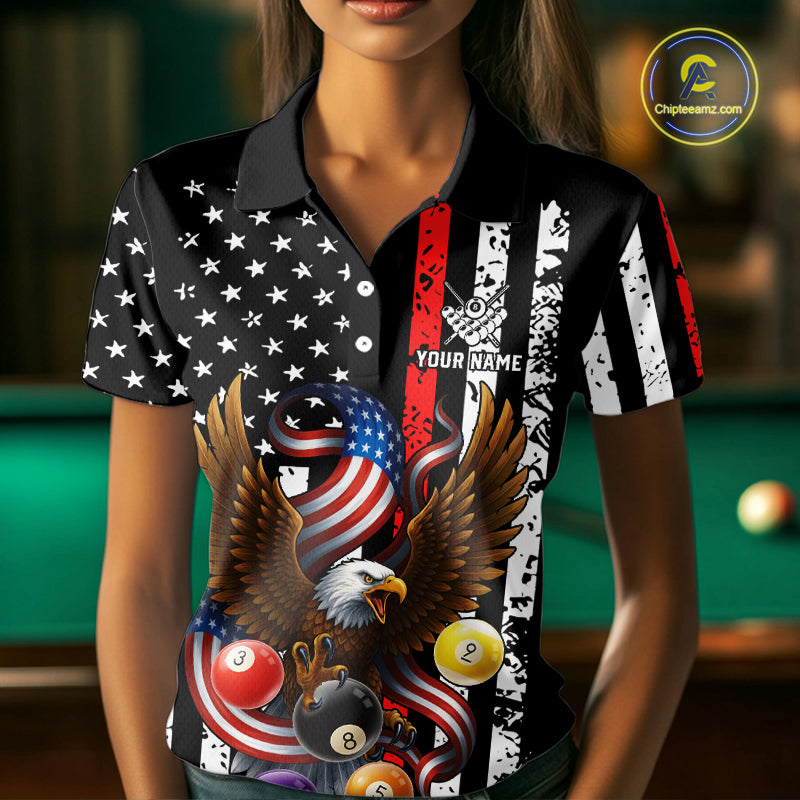Billiard Eagle American Flag Stripes Pool Jersey For Women Custom Patriotic Billiard Team Shirt|Red TDM4983