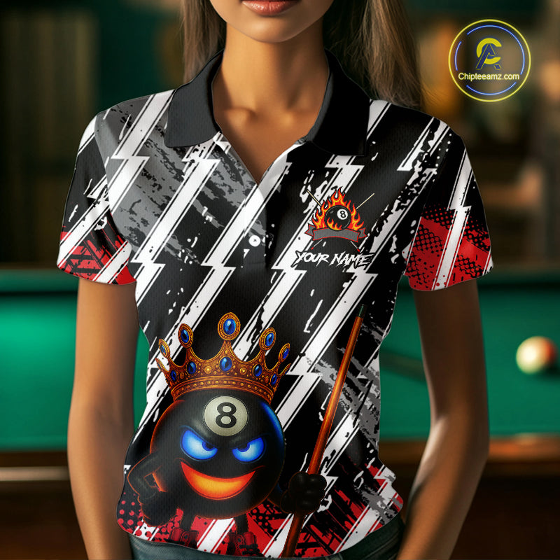 Funny 8 Ball Pool Crown Billiard Shirt For Women Custom Billiard Jersey Team Polo & 1/4 Zip |Red TDM5081