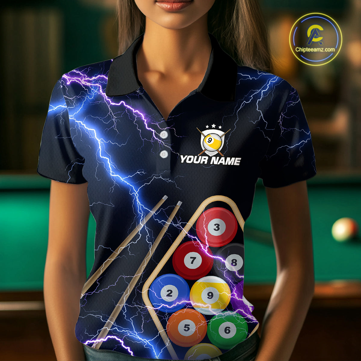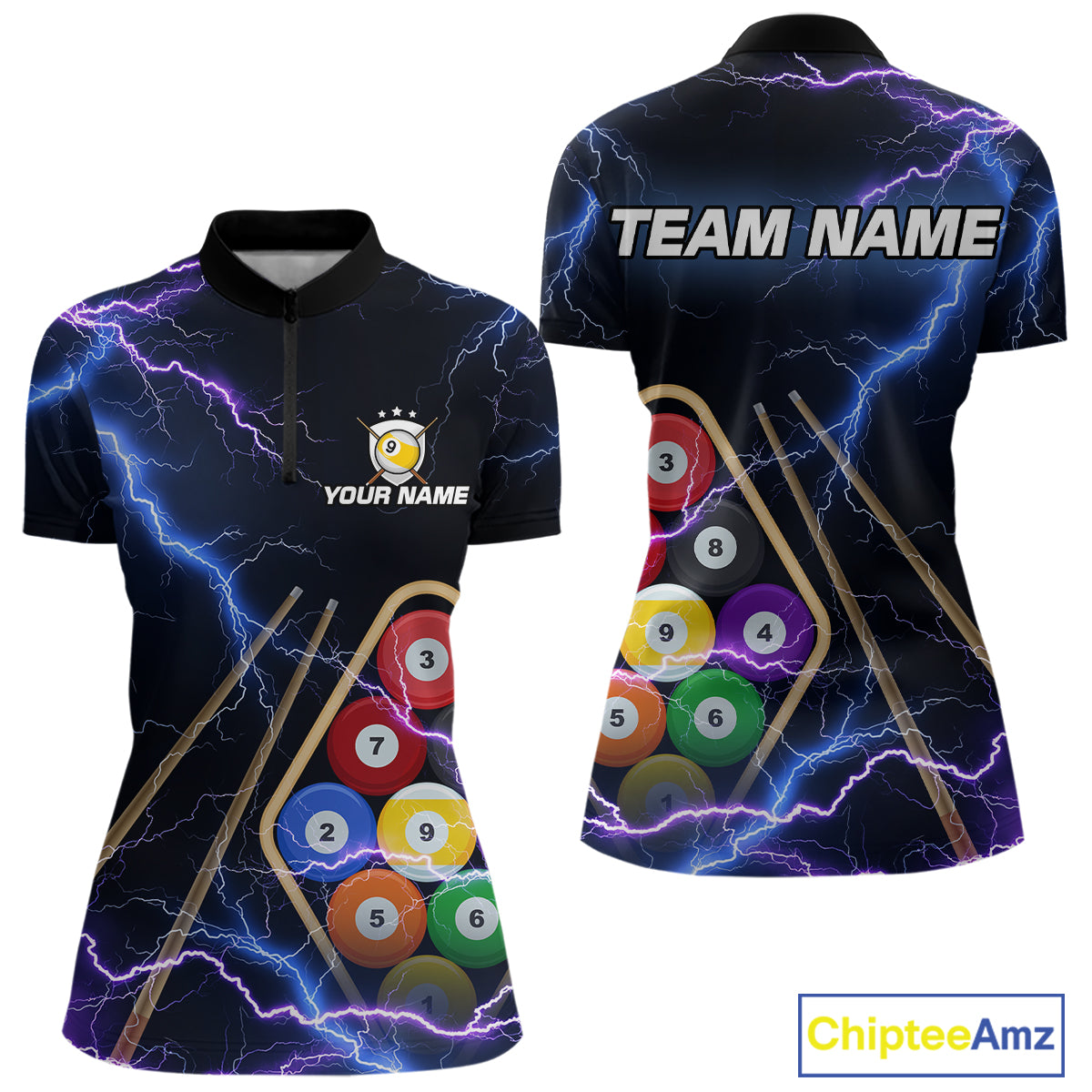 Purple Thunder Lightning 9 Ball Billiard Shirt For Women Custom 9 Ball Team Shirt, Billiards Jerseys TDM5135