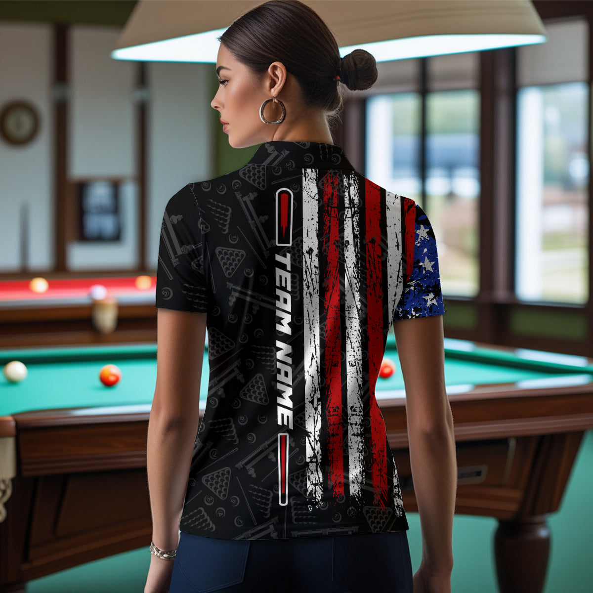 American Flag Billiard Jerseys 8 Ball Pool Billiard Shirts for Women Polo & 1/4 Zip Shirt NNT05
