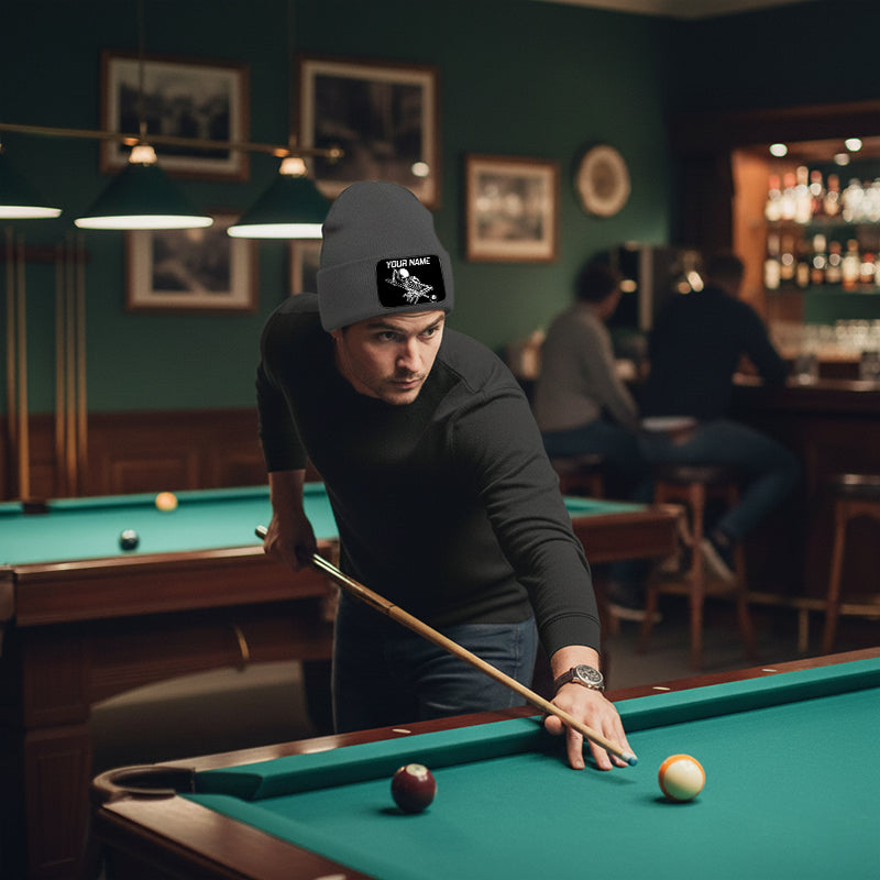 Whether you're heading to a winter billiard tournament, cheering for your team, or creating standout merch for your billiard club, this knit beanie delivers both function and personality.