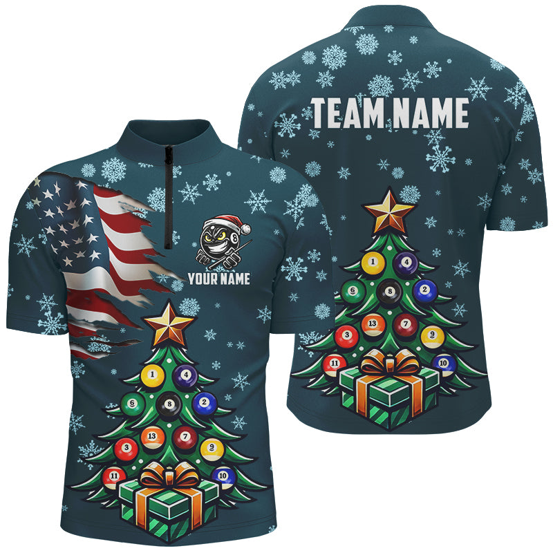Personalized Christmas Billiard Shirts For Men Custom US Flag Christmas Pine Tree Billiard Jerseys TDM3010