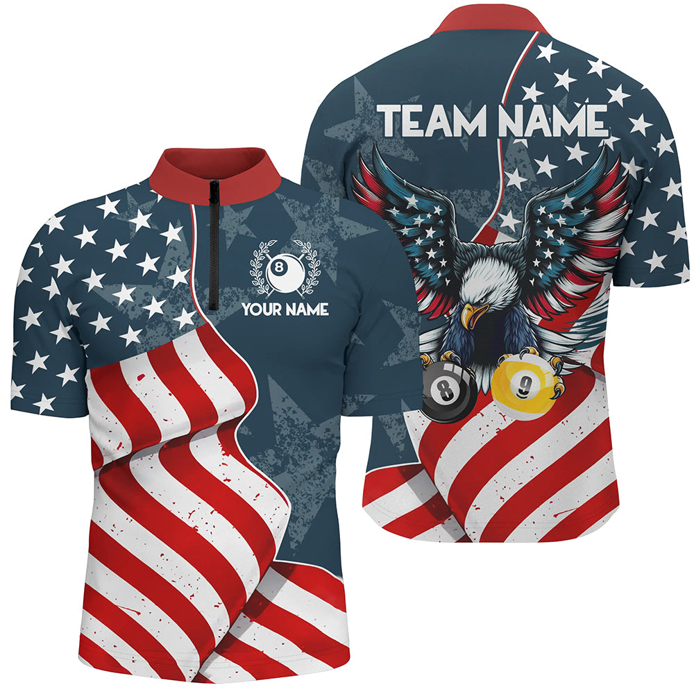 American Flag Eagle 8 Ball & 9 Ball Billiard Shirts For Men Custom Patriotic Cool Billiard Jerseys TDM3094