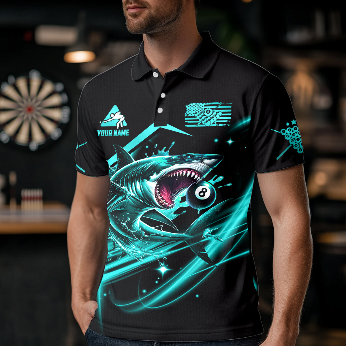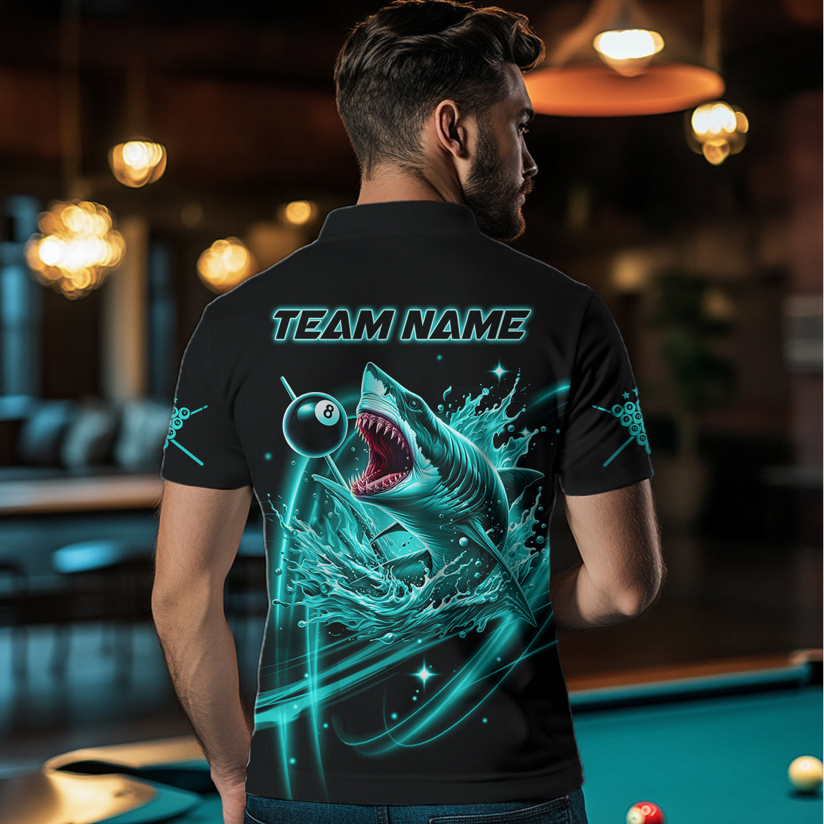 Turquoise 8 Ball Pool Billiard Shark Polo & Quarter Zip For Men Custom Team League Billiard Jersey TDM3408