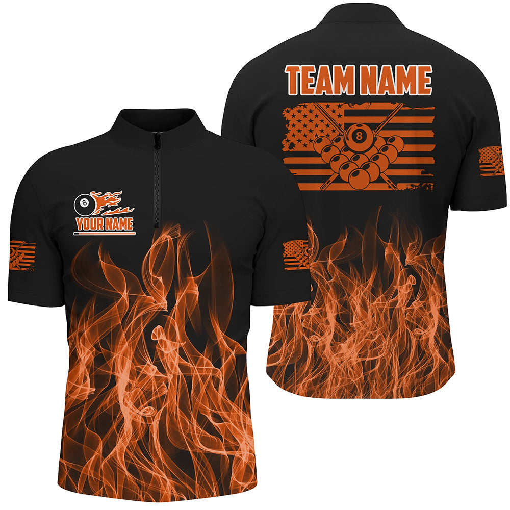 3D Orange Flaming American Flag Men Billiard Shirt Custom Patriotic Pool Player Billiard Jersey TDM3453
