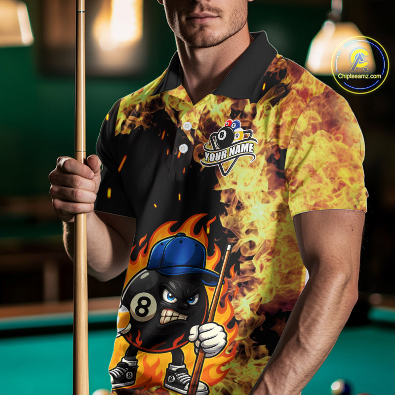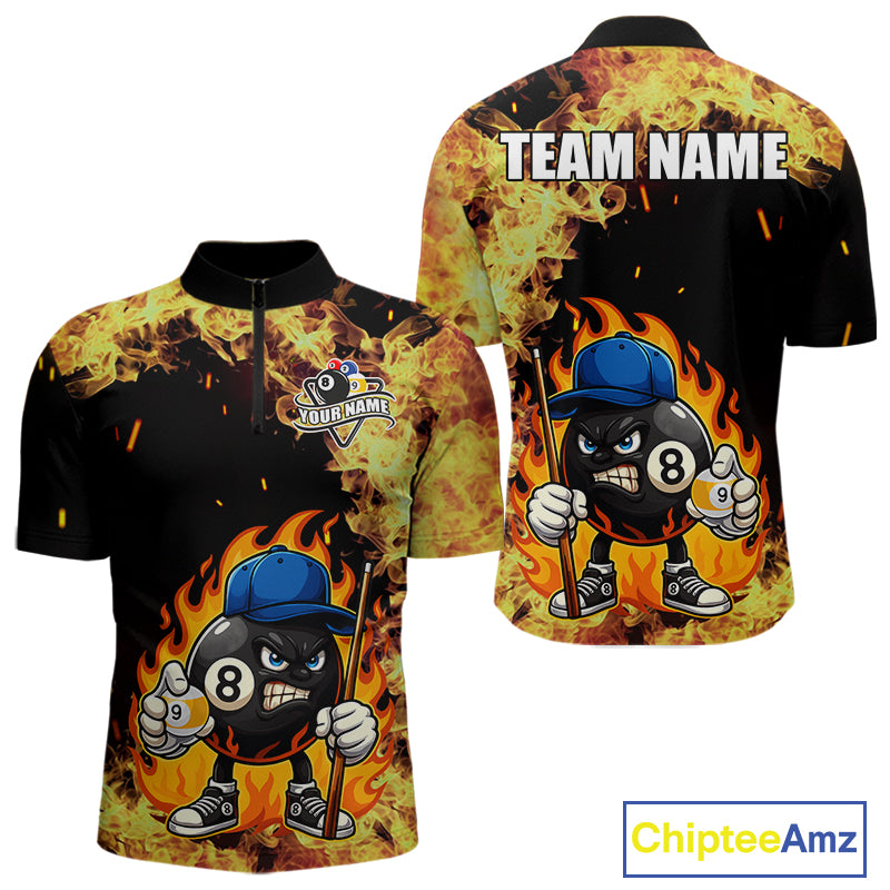 Personalized Billiard Flame Funny 8 Ball Pool Polo & 1/4 Zip For Men Custom Billiard Team Jersey TDM5201